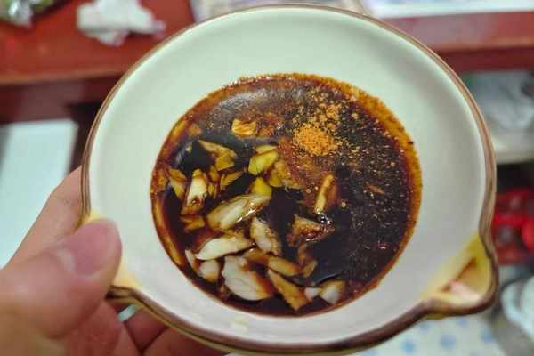 3、调上一些料汁,放一些葱蒜,生抽,蒸鱼豉油,椒盐,玉米油,混合均匀。