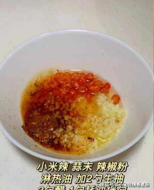 第五步:将辣椒小米洗净,切成细段。将大蒜去皮切块。将切碎的辣椒和大蒜放入碗中,加入少许辣椒粉,倒入热油激发大蒜的香味。