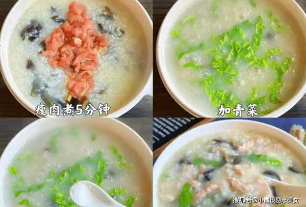 烹饪技巧:鸡蛋罐头瘦肉粥是一道营养美味的粥。方法其实很简单。大米必须提前浸泡。叮,先在锅里煮皮蛋,再放瘦肉片煮至变色,最后配上青菜沙拉,最后加入盐、胡椒粉和香油,小火煮一会即可出锅.从锅里。