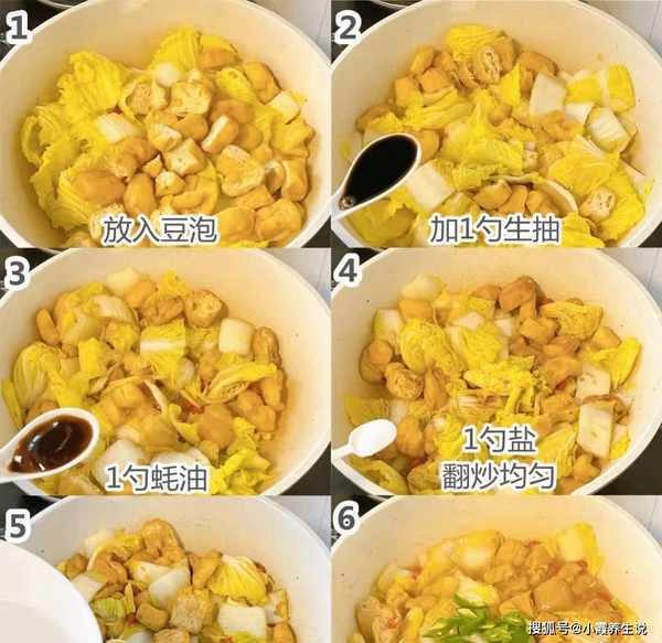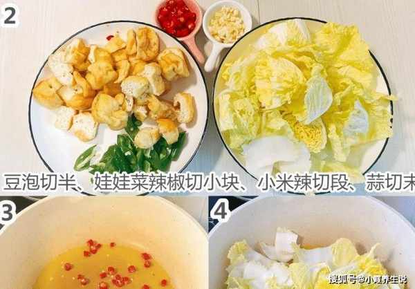 烹饪技巧:白菜蒸豆腐是一道非常简单的小菜。小白菜味道香甜可口。不要忘记反复清洗小白菜。炸豆腐从中间切开,炸豆腐特别好吃。这道菜需要先炒猪油,加入蒜头和小米椒,加入小白菜炒软,加入炸豆腐调味,加一碗水小火炖一会,最后加入生抽、蚝油等配料香料,煮至配料可口,收集汁液并从锅中取出。
