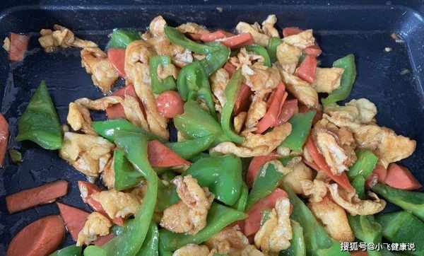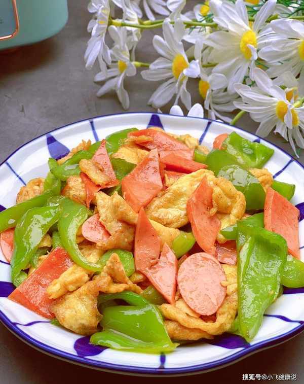 小贴士:火腿肠青椒炒鸡蛋是一道看起来很诱人的菜,但很多人认为这道菜不健康。火腿肠选择猪肉肠而不是淀粉肠,火腿肠切成片备用。鸡蛋需要提前准备好,鸡蛋要先用中小火煎至成型,然后翻炒。记得热锅冷油爆香大蒜,然后依次放入火腿肠、几个煎鸡蛋和青椒,搅拌均匀,最后调味即可上桌。