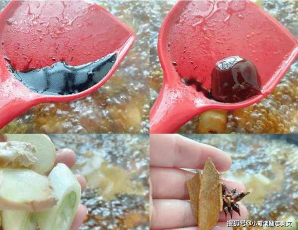 第四步:加入一大匙生抽,取出一匙,一匙蚝油,加入八角和桂皮,煮约。让猪肉煮10分钟,直到它入味。