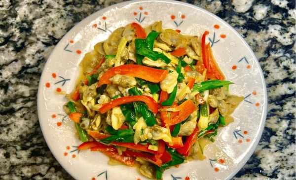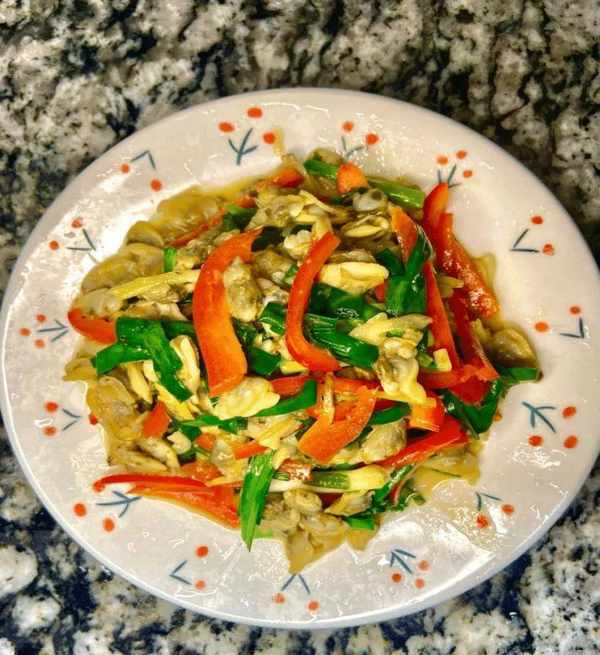 红椒韭菜烧花甲肉是冬天餐桌上不可缺少的一道菜。虽然价格有点高,但是很有营养,肉质很嫩。经常吃非常好吃。