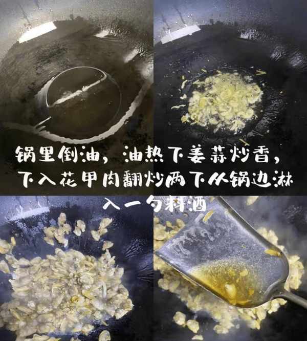 难度分析:好韭菜、鲜花之甲等饰品一定要选好。花甲还需要养一段时间。记得事先焯一下,去除腥味。花甲的火候和炒肉的技巧,掌握难度都比较大。