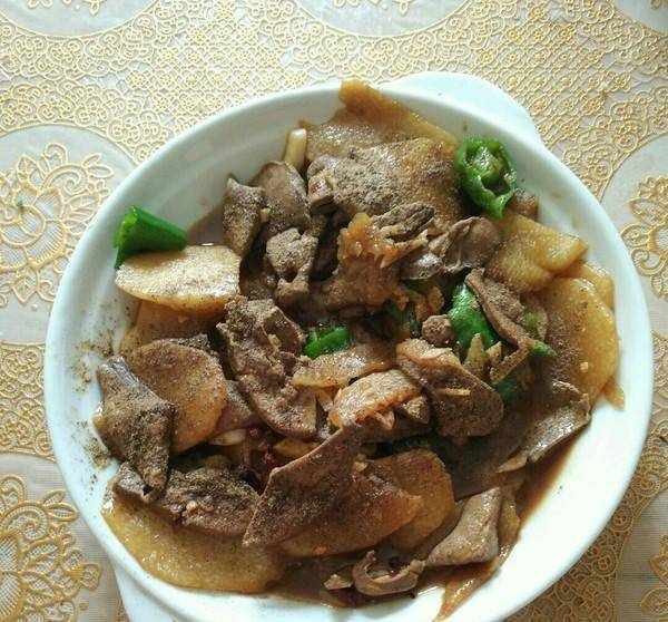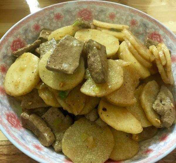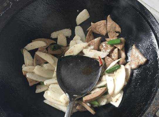 Tips:五花肉是猪的肠子。五花肉其实很腥。不管是炸的还是煮的,一定要除臭。用腌盐和少许淀粉,可以去除腥味,使猪肝柔软可口。炒猪肝前,猪肝一定要焯一下。炸猪肝需要大火。热锅下油,先炒山药片,再炒猪肝片。待所有材料入味后,加入盐和生抽,加入调味料起锅翻炒入味。