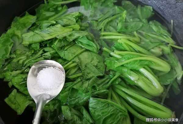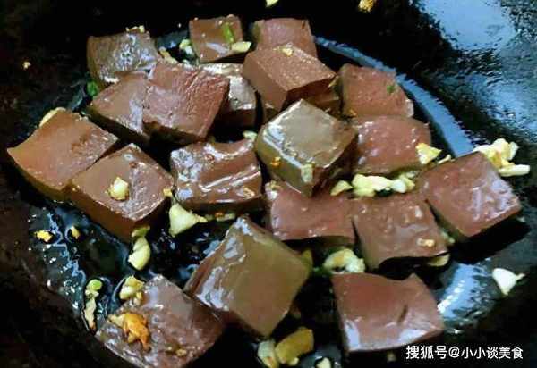 提示:菠菜和鸭血是高铁蔬菜。菠菜叶中含有草酸,但与钙混合后,很容易形成草酸钙。我们应该用热水清洗菠菜,以去除草酸。草酸钙的形成不会干扰其他营养素的吸收。鸭血是一种很腥的食物,也应该用酒和盐来烹调,这样可以去除鸭血的腥味,保留鸭血的味道。这道鸭血菠菜是先把鸭血烤熟,然后倒入菠菜,最后加入一些配料,装盘出锅。