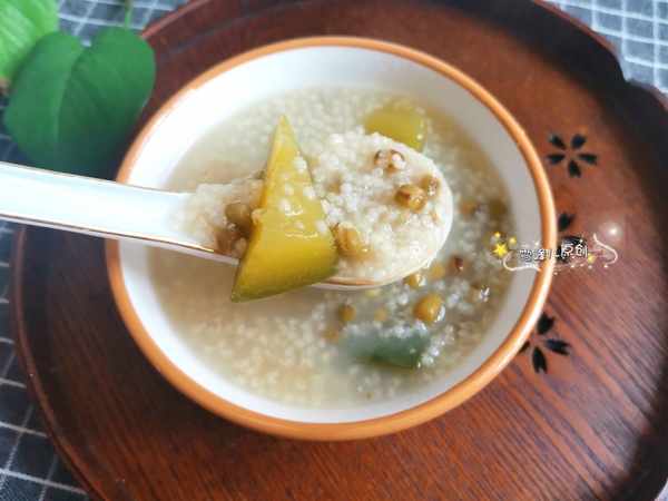 所用資料:小米1勺,綠豆1勺,貝貝小南瓜半個。