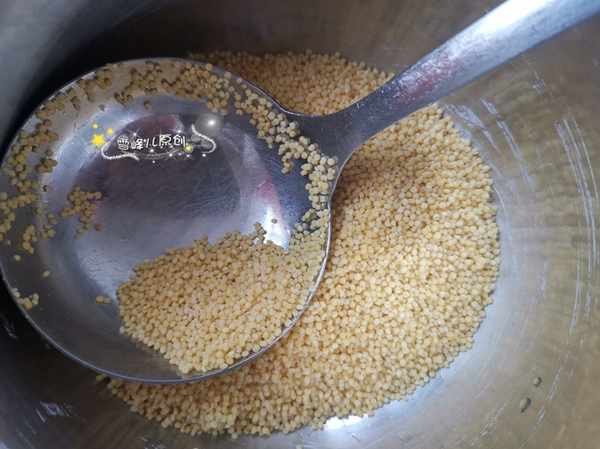 第二步:小米洗淨,小米的營養價值很高,含有人體所需的9種必需氨基酸、小米熬粥有"代參湯"之美稱。小米中的維他命B1,維他命E、鎂、鈣是大米的3倍多;膳食纖維、鐵、鉀、磷、硒是大米的2倍多;小米的不飽和脂肪酸是大米的4倍,對比兩者的營養成分可以看出,小米整體的營養成分都比大米高,所以我們做粥選擇小米營養更好。