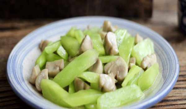 第六步煮:待潮气,快炒,出锅。这些超级酥脆和解毒的生菜炒蘑菇刚出锅。