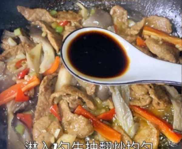 第二步:将精瘦肉清洗干净,猪肉切成厚度相同的片状,加上生抽一勺,调入半勺老抽,一勺料酒去腥,调入红薯淀粉一勺,最后调入几滴食用油,用手抓拌均匀,让肉片形成保护膜,锁住肉片的水分和营养,腌制10分钟即可。