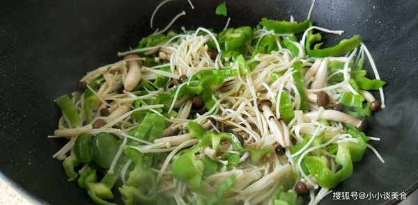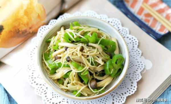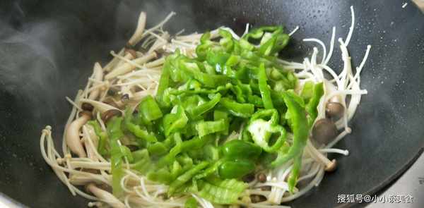 Tips:青椒炒双菇是一道特别好吃的菜。蟹味菇和金针菇是非常鲜嫩的蘑菇,但是不能直接下锅炒。蟹味菇要用盐水焯一下。这个要用盐水泡水焯一下,这样可以去除香菇的腥味,入味更好。炒双菌需要热锅冷油,加入蒜茸和双菌翻炒,待双菌炒至变色,最后加入生抽和蚝油,加入香料,翻炒,然后从锅中取出。