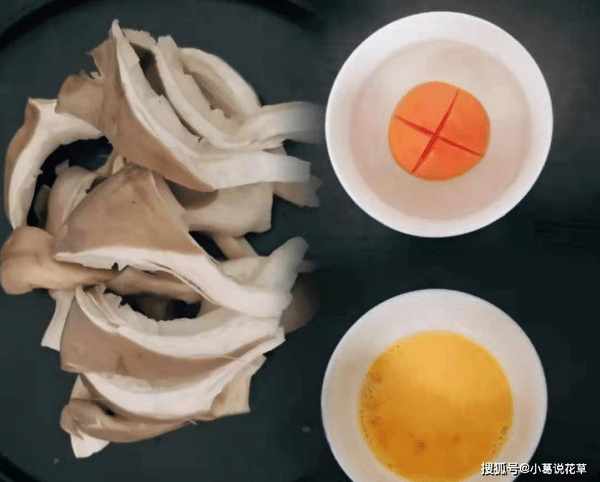 原料选择:准备好鸡蛋两个(鸡蛋的好坏主要看有没有变质,记住只能放40天,新鲜的鸡蛋不会变黄),香菇一两个(其实是它们叫修珍菇,是平菇的一种)很普通的一种蘑菇,表面很光滑,颜色是深灰色,帽沿是卷边的,没有变形也没有长斑点,虽然是摸起来很重,不应该太湿并且有弹性。平菇鲜嫩),小葱少许,猪油一勺,清水适量,热水适量,白醋几滴,水淀粉适量,盐适量,白糖3克、白胡椒3克等。