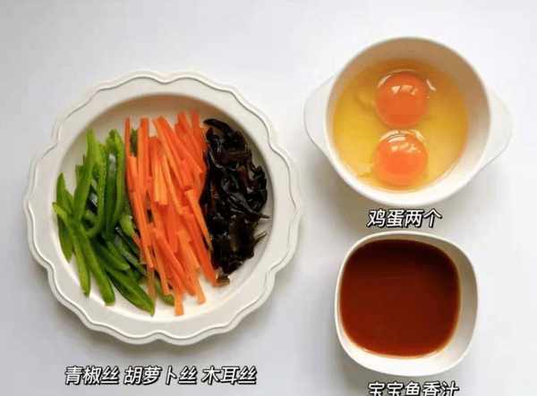 准备材料:买红辣椒一个,胡萝卜半根,黑蘑菇15克,原味酱油一汤匙,番茄酱一茶匙,淀粉适量,纯净水少许,土鸡蛋两个,鱼肉少许-调味酱,吃油少许,水少许,盐少许,鸡精等调料半匙。