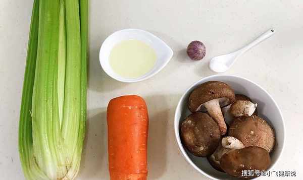 食材选购:选购新鲜西芹250克左右(西芹是芹菜的一个品种,西芹的根茎要粗一些,西芹主要看根部和叶子,一定要非常新鲜,掐起来非常多水,买回来的西芹建议覆盖一层保鲜膜),选择5朵鲜香菇(香菇要购买表面没有起翘,没有卷曲和开裂,菌盖没有明显破损和开裂,菌菇不要太大或者太小,优质的香菇闻起来有一股独特的香菇味道),一根胡萝卜(胡萝卜外皮光滑,色泽很均匀,往往带泥土的更容易储藏,而且不容易腐烂变质),准备几瓣大蒜头,食盐若干,食用油少许,清水若干,其他。