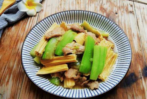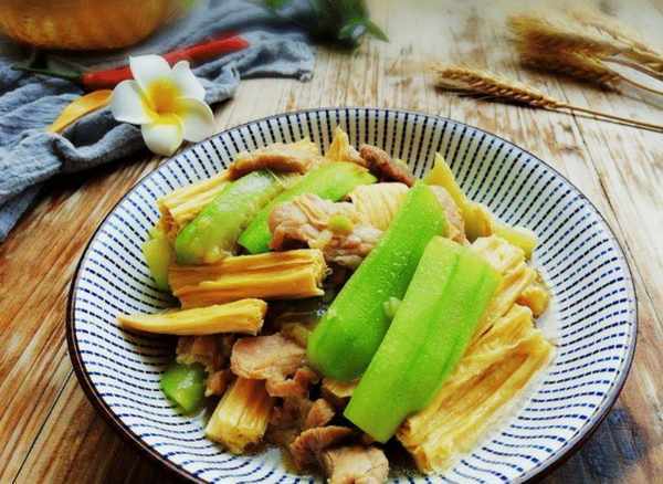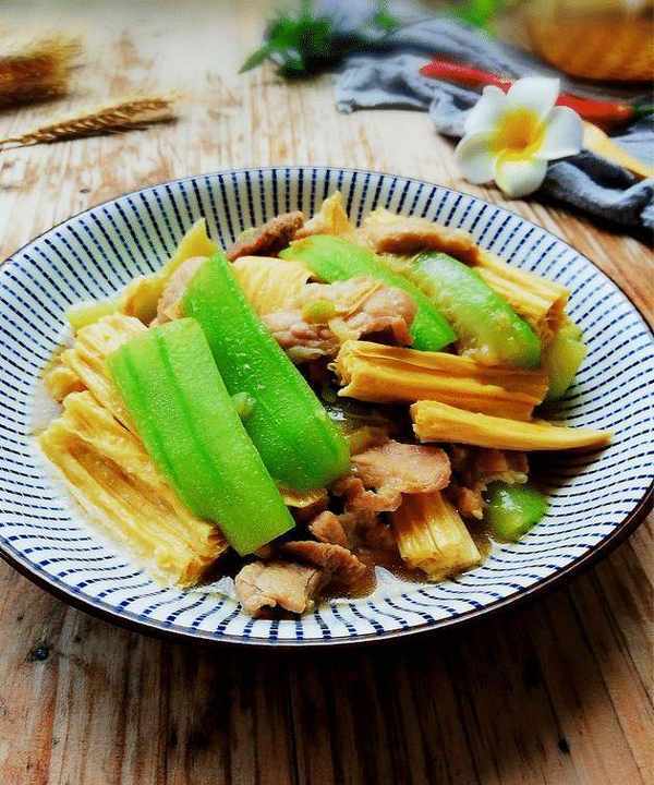 烹饪技巧:需要掌握丝瓜和腐竹的手艺。你需要用热水冲洗腐竹使其软化。掌握猪肉加工技巧和烹饪技巧是非常困难的。