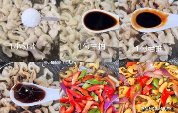 第六:加一勺料酒去腥,一勺生抽一勺老抽,一大勺盐,一勺蚝油调味,迅速搅拌均匀。