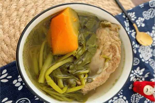 西洋菜陈皮胡萝卜猪肉汤是一道广东人爱喝的鲜汤。食材的选择非常重要。猪骨一定要处理好。猪骨要先用凉水洗净,然后过凉水,上冷水锅焯一下,捞出少许。不会是鱼。将处理好的食材放入锅中,加入适量的水,先用大火炖,再用小火继续煮,最后下锅,加入少许盐、鸡精和胡椒粉,将汤煮熟直到美味,从平底锅。