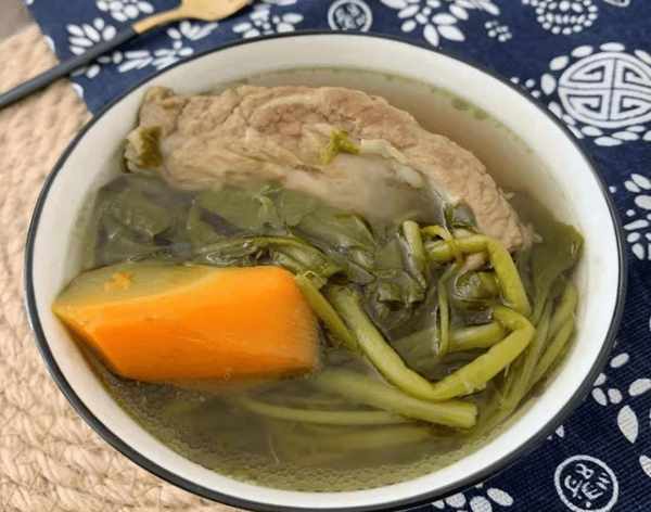 烹饪技巧:一定要选择猪骨、西洋菜和胡萝卜。应该先吃猪骨。这道西洋菜陈皮萝卜肉汤的功夫很难掌握。