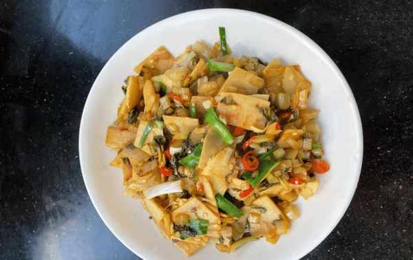 烹饪技巧:选择冬笋、酸菜和小米椒,冬笋切片焯水,酸菜切小块。掌握这些酸菜炒冬笋的顺序并不难。