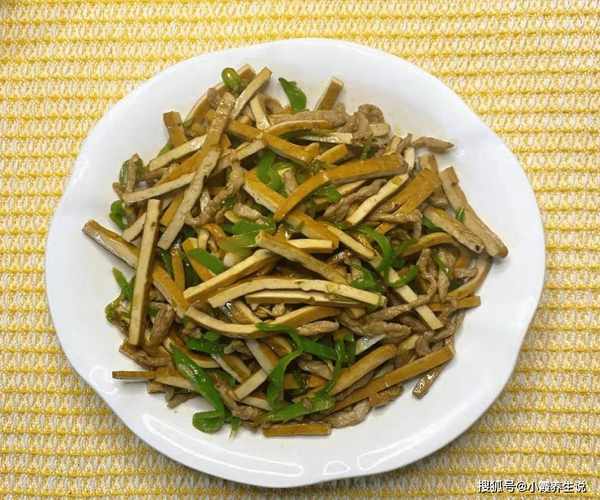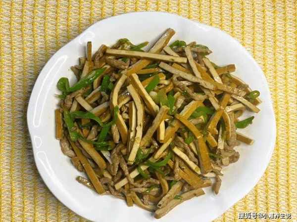 尖椒豆腐干炒肉丝是一道荤素搭配合理的菜肴。豆腐干很有弹性,肉丝柔软细腻。两者一起烤,鲜嫩爽口,超级入味,比大鱼大肉还好吃。