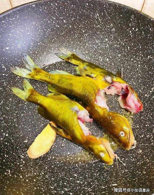 3:炒锅洗干净,锅底放食用油烧热,锅底加少许盐(这样黄骨鱼更容易剥皮),把黄骨鱼煎在一个直到变成金黄色,然后翻转并增加一会儿。