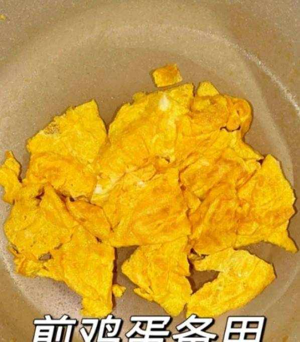 第二步:盘子抹少许油,倒入蛋液,继续中小火煮片刻,让蛋液稍微凝固,用锅铲搅拌均匀,分入几个鸡蛋,放在一边备用。