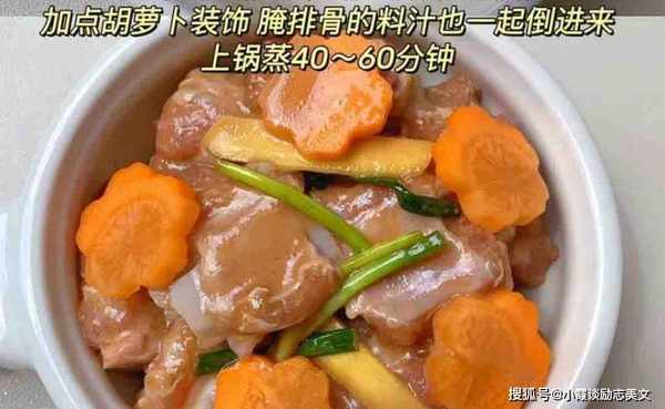 第七步:锅里烧开一小锅水,排骨上锅蒸40到60分钟,中途不要揭锅,记得多炖一会儿。