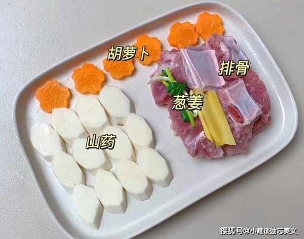 配料详情:买一根胡萝卜,选择约。排骨400克(排骨是最受欢迎的猪骨,肉很嫩,我们家喜欢蒸排骨或者炖排骨汤,排骨很好吃,但是一定要提前清洗干净),买约。山药200克(建议选择粗一点的山药,山药可以炖也可以蒸,口感软糯,营养价值很好,老少皆宜),小葱少许,凉水少许,适量淀粉少许,蚝油少许,姜几片,香菇粉一小勺,食用油少许,原味酱油一勺等调料。