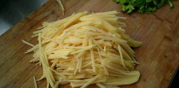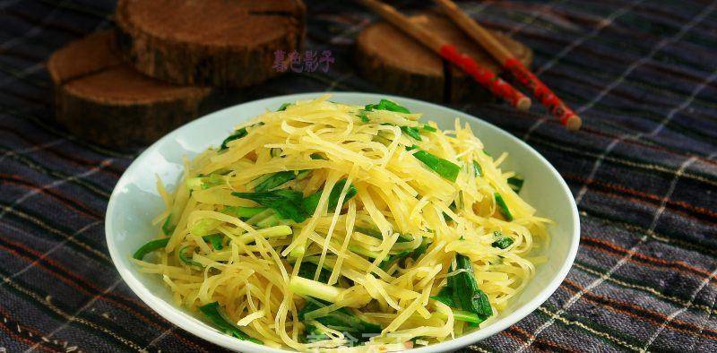 小贴士:土豆块是非常酥脆的食材,不管是炸的还是凉的,都很入味。其实炸薯片需要选择黄心的土豆。不要忘记将土豆去皮并切成薄片。将土豆用清水浸泡并洗净。去除原来的淀粉质材料以保持马铃薯片的脆度。炸好的土豆片要大火炸熟,炒至生,加入韭菜,最后加入香醋,可以使土豆片发甜回味,最后调味即可出锅.