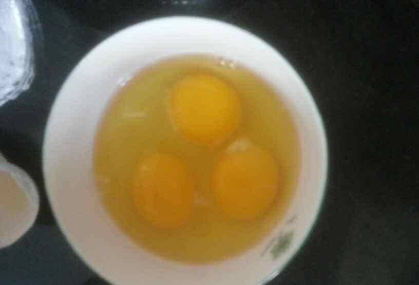 1:先把3个鸡蛋打在一个碗里,蛋液一定要先搅匀,然后再加点水,加糖搅匀,加入料酒去腥,撒盐使蛋液非常入味,蛋液一定要拌匀备用。