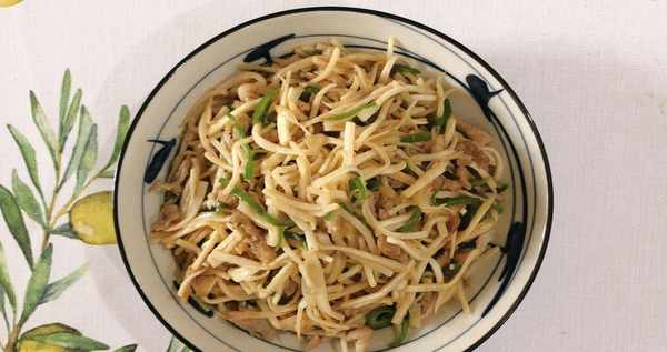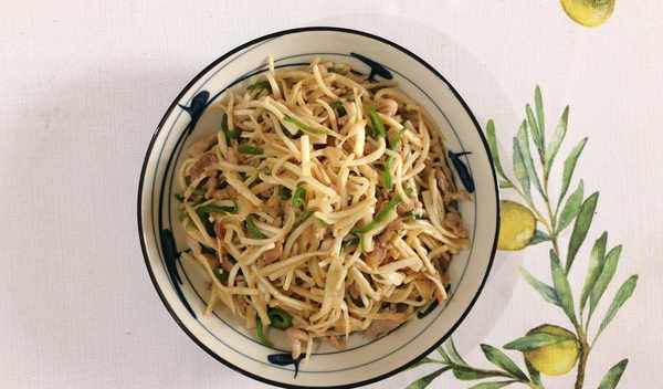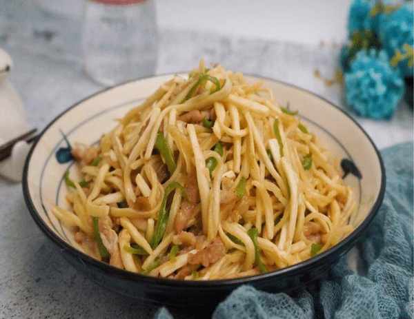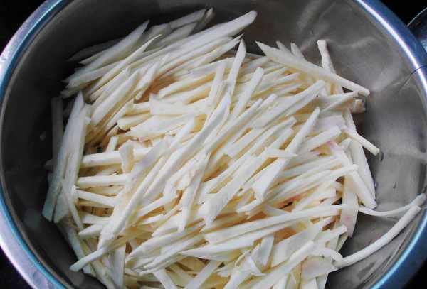 第一步:将所有的新鲜猪肉洗净,所有的盆景都切成几根细丝,里脊肉放入碗中,加盐,生抽一茶匙,加食油,加红薯粉包裹,保持在相同的腌料后约20分钟。