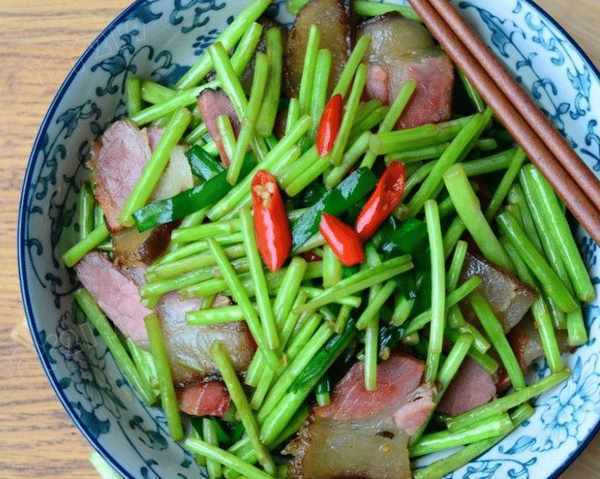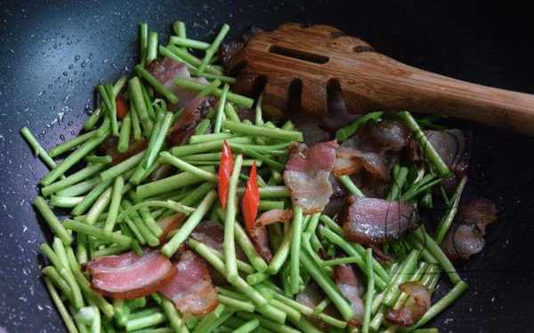 培根是一种高度腌制的肉。培根肥而不腻。它闻起来很香。这与艾蒿藜麦很相配。它比猪肉和牛肉更受欢迎,而且不会增加体重。帮助增进食欲,有效增强食欲,让家人食欲大增。藜蒿中和猪肉脂肪。它尝起来又香又脆。适合家人冬天食用。