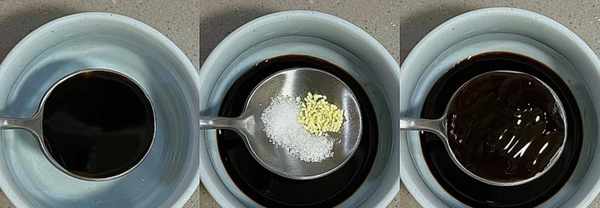 2:准备一个空碗,加入两勺生抽,一勺生粉,盐,鸡精和白糖,加入一勺蚝油,加少许纯净水拌匀备用。