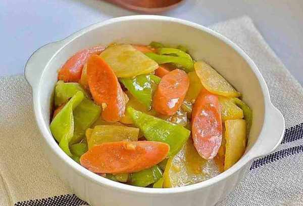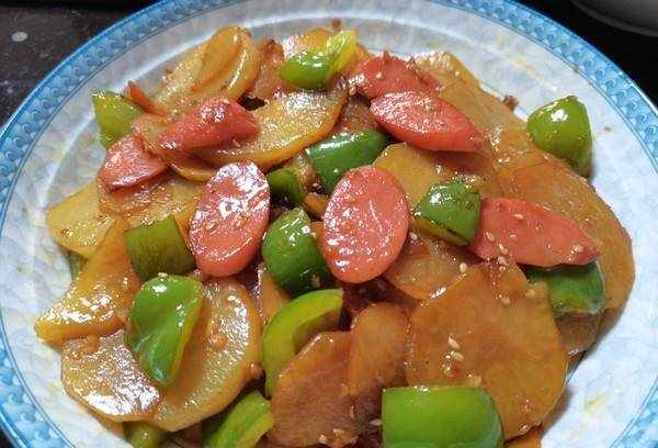 青椒火腿肠炒土豆是我家的一道特色菜。孩子经常没有食欲。炸火腿肠和两种食物颜色都很漂亮。薯片非常香脆爽口,清爽开胃。小白可以学。永远吃不腻。