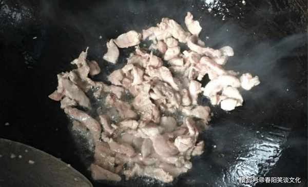 第四步:锅底稍微烧热,加少许油,姜蒜,稍微炒一下,倒入腌好的肉末,肉末全部滑落,快速翻炒,翻炒几下,加一点旧泵给瘦肉上色,然后端上来。