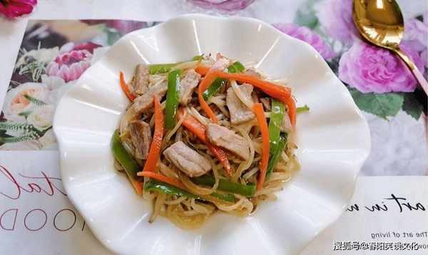 小贴士:青椒、胡萝卜、豆芽炒菜是我家孩子的最爱之一。食材的选择非常简单。豆芽洗净,去根。瘦肉应洗净切碎。盐、酱油和淀粉,肉末要均匀的裹上,腌制至少15分钟,肉末会炸的很好吃。这道菜要先用瘦肉炒熟,再与豆芽等食材一起炒,与瘦肉一起炒,调味后上菜。