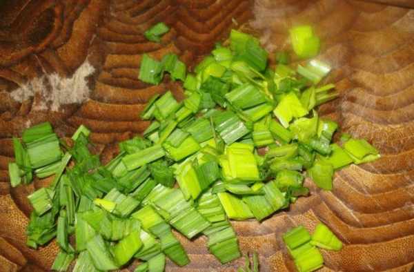 8:里面放点蒜叶,也可以加韭菜块,炒出蒜叶的香味,加盐调味,喜欢吃辣的可以加辣椒油和辣椒粉炒香。