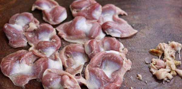 准备食材:准备鸡肚若干(优质鸡肚颜色红润,弹性好,鸡肚较厚,味道鲜美,约250克,12元),泡椒适量。、干辣椒少许、姜一片、鲜蒜几叶、料酒、白酒少许、盐少许、生抽、蚝油少许、胡椒粉少许、香醋少许、酸豆100克、植物油少许,和其他香料。