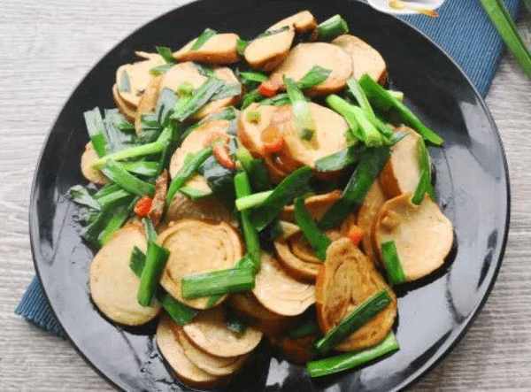 Tips:素鸡是豆制品的加工食品,但要选择新鲜的素鸡。将素鸡用清水浸泡,然后用热水焯一下,加入盐和小苏打,素鸡非常入味。柔软爽滑,在不降低营养价值的情况下口感更佳。素鸡一定要多放油,平底锅将素鸡煎熟,加少许水煮熟,加生抽和鸡精,少许盐,最后放韭菜调味,开小火收汁,出锅了。