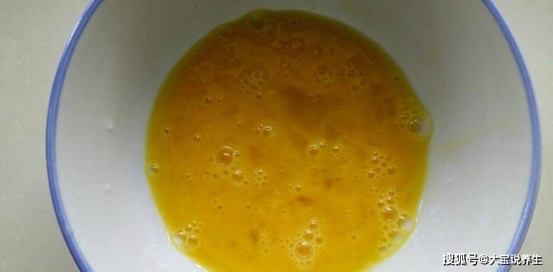 第四步:锅底清洗干净,锅底加入更多的菜籽油,倒入所有蛋液,小火将蛋液煎至凝固,快炒片刻,盖上木签,然后放入碗中。