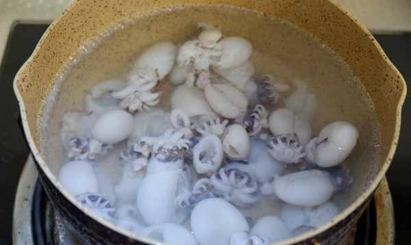 烹饪步骤1:鱿鱼去掉包装(一般内陆城市都是冷冻包装),将果酱鱼放入冷水中,让果酱鱼自然溶解,然后用清水冲洗干净。