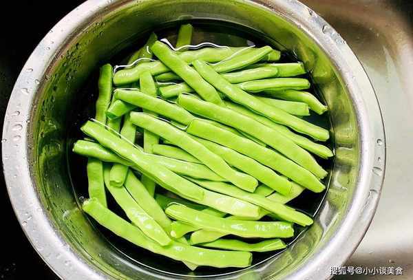 第一步:将买回来的芸豆洗净,然后将芸豆掐掉2头,用盐水浸泡10分钟左右,捞出后控干水分。