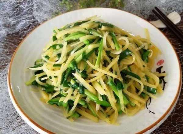 土豆条是一道非常家常的炒菜。很多人只知道酸辣土豆条。其实土豆条可以和韭菜一起吃。土豆条和韭菜一起吃特别香脆可口。营养价值特别高。土豆主要是淀粉,热量不高而且韭菜还可以吸收脂肪,帮助刮油排毒,有助于减少肥胖,让你的胃不那么臃肿。