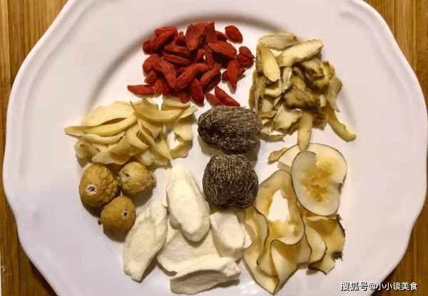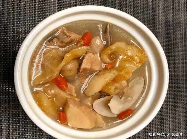 配料表:买鱼肚50克左右,鲜排骨350克左右,枸杞子20克左右,玉竹20克左右,山药适量,海椰少许,无花果少许,蜜饯少许红枣、干百合几片,水少许,温水适量,姜一大块,盐适量,料酒少许,盐少许,胡椒粉少许等调料。