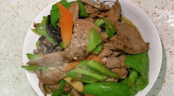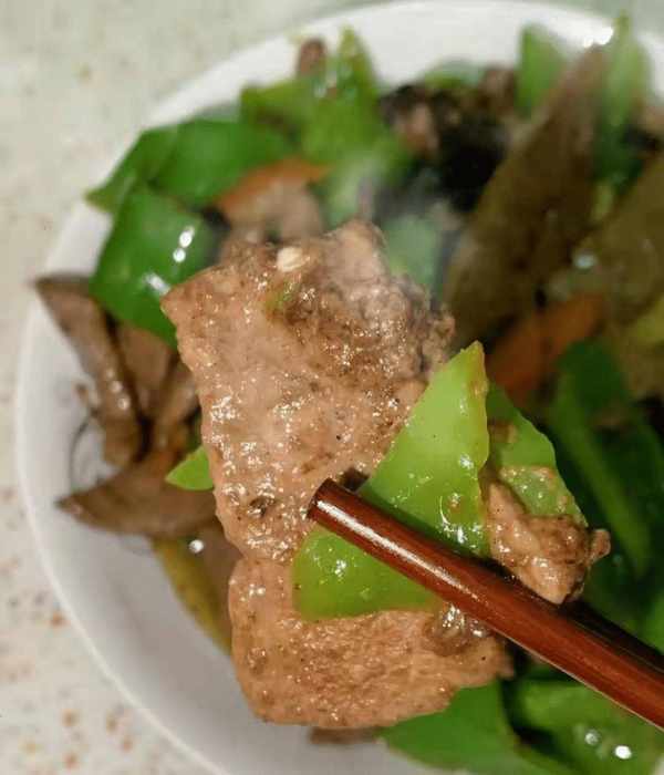 第八步:将炸好的青椒和香菇沥干水分,倒入少许水淀粉,加少许生抽和蚝油,快速翻炒片刻,撒上盐、鸡精和少许胡椒粉,收汁至“计划并采取。把它从锅里拿出来。青椒、胡萝卜、香菇炒猪肝就做好了。