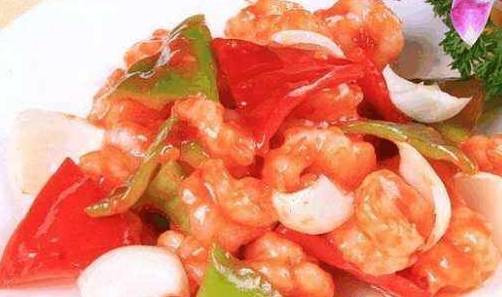 等到虾仁均匀沾染酱汁的时候,我们稍微翻炒就可以啦。