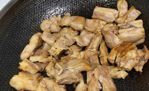 第四步:煎锅放入适量食用油,待油温达到60%时,倒入焯过水的羊排,大火炒出水分。