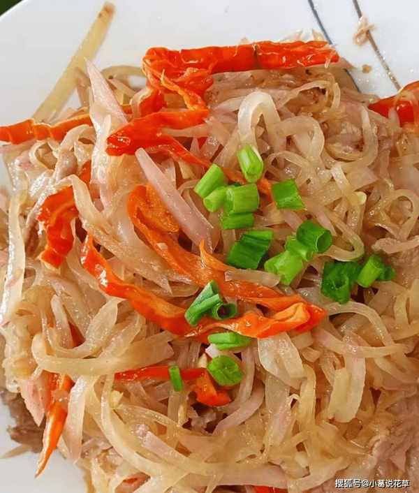 第六步:倒入萝卜丝,炒萝卜丝,加少许红辣椒丝炒至生,起锅边加半勺生抽和蚝油拌匀。第七步:最后加入少许盐、少许鸡精和胡椒粉,用小火翻炒一分钟,加入切好的葱花装盘。这道红辣椒、樱桃和萝卜烤好的里脊肉丝就做好了。