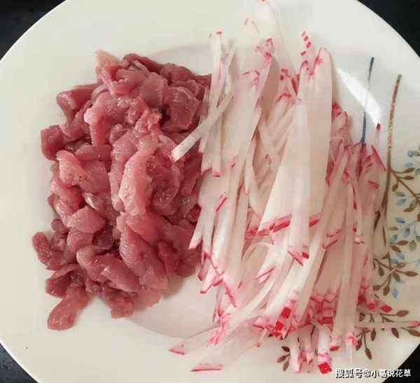 红椒樱桃萝卜炒肉丝是一道很满足的菜。萝卜吃起来很甜,里脊肉丝很嫩,红辣椒也出色,非常入味,闻起来很香。连米饭都不够。萝卜含有木质素、维生素C等营养成分。与猪肉块一起炒,可以开胃,预防咳嗽和一些疾病。经常食用对身体有好处。