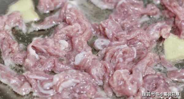第五步:锅底稍微烧热,油烧热,加入姜末和葱花,将肉丝放入锅中,让肉丝滑落,翻炒一分钟,出锅肉丝很快就会熟了。